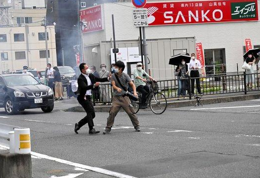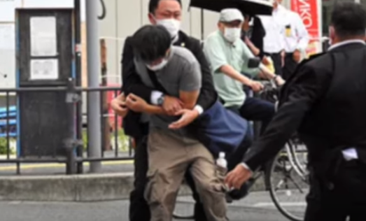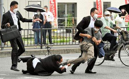 아베는 일본 참의원 선거를 앞두고 유세 연설 시 6미터 뒤에서 2발의 총격으로 왼쪽 가슴을 노린 사제총으로 가슴과 목에 구멍이 뚫려 자동제세동기(AED)를 사용하면서 병원행. 심폐 정지상태로 보인다고 보도된 후, 같은 날 17:05분 최종적으로 사망했다는 소식..