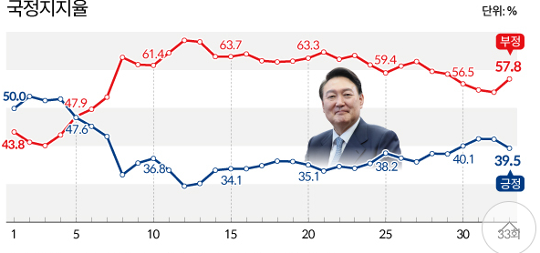 1. 윤 대통령 국정운영평가 : 부정 평가 54.7%, 긍정평가 36.8%