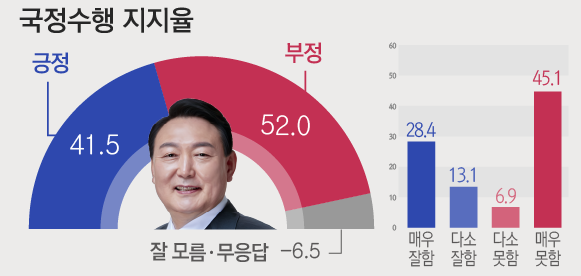 1. 윤 대통령 국정운영평가 : 부정 평가 52.0%, 긍정평가 41.5%
