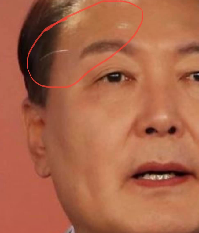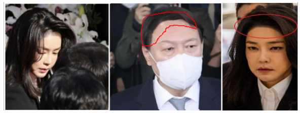 이태원 참사' 조문 당시, 김건희와 윤석열의 조문 모습을 보면, 이마에 검은 무언가를 칠한 사진이 여럿 발견된다.