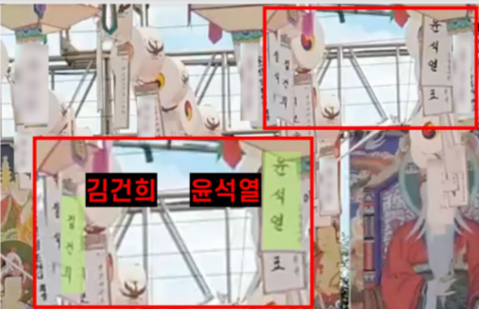 ▶빨간연등은 이승사람, 흰 연등은 저승사람의 복을 위해 이름을 쓴다. 이는 소 같은 재물이 현생에 있는 사람의 죄를 대신 가져가라는 뜻(새로운 시작)이다. 즉, 살아있는 소의 가죽을 벗겨, 그 고통의 한을 채집해 현생 사람들의 복을 기원한다는 뜻이다. (한을 풀어 주는 한국의 무당과 근본적 차이가 있다)