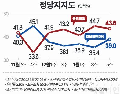 (2023년 1월 29~30일, 1005명, 가상번호활용한 무선전화, 신뢰수준에 ±3.1%p)