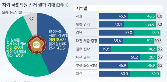 ▲부산·울산·경남 : 민주당(39.2%) 국민의힘(49.8%),