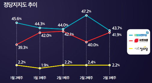 2. 정당지지도 : 민주당 43.7%, 국민의힘 41.9%