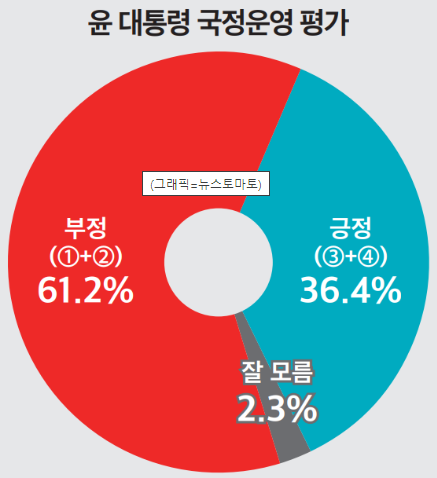 1. 윤 대통령 국정운영평가 : 부정 평가 61.2%, 긍정평가 36.4%