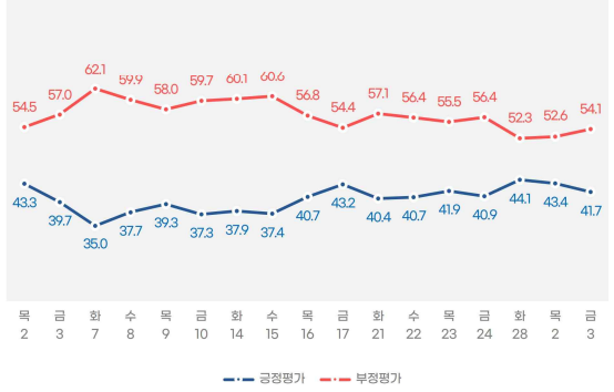 1. 윤 대통령 국정운영평가 : 긍정 42.9%, 부정 53.2%