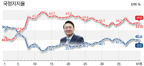 1. 윤석열대통령 지지율 : 긍정 40.6%, 부정 57.0%