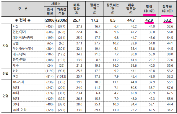 ▲강원/제주(긍정 44.3% 대 부정 55.7%)