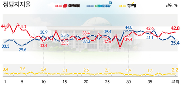 2. 정당지지도 : 국민의힘42.8%, 민주당 35.4%