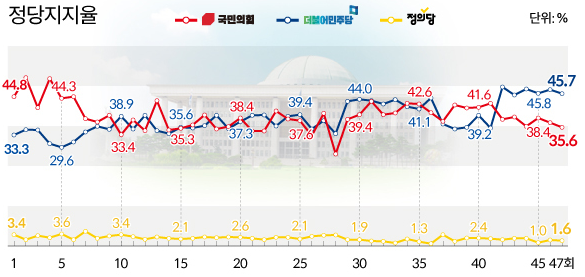 <정당지지도 추이 : 출처 ;여론조사 공정>