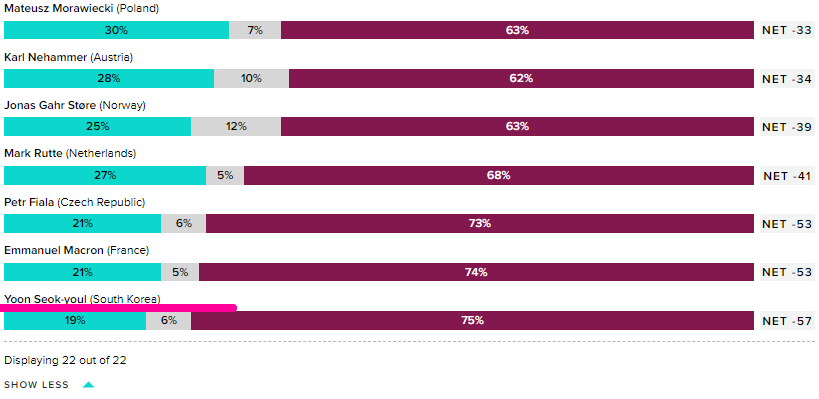 1. 윤 대통령 국정운영평가 : 긍정 19%, 부정 75%(22개국 중 22위)
