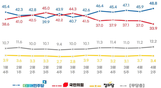 2023.04.13 - [정치] - <4월 2주 차 > 윤 대통령 지지율 및 정당 지지율 등 각종 여론조사 집계