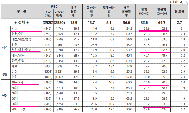 ▲서울(긍정 33.5%, 부정 64.7%)