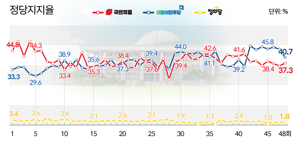 2. 정당지지도 : 민주당 45.7%, 국민의힘 34.5%