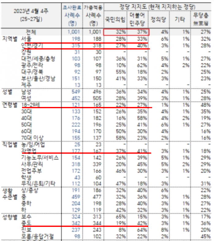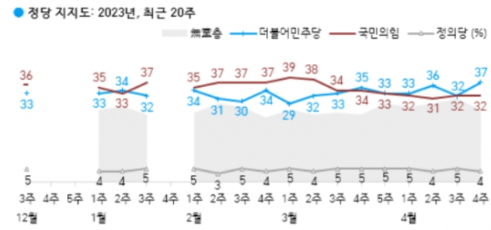 2.정당지지도 : 더불어민주당 37%, 국민의힘 32%