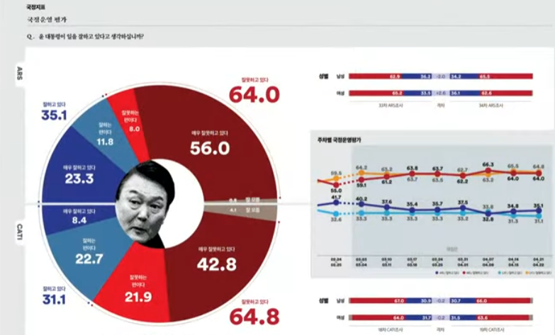<4월 4주 차 : 4월 24일~4월 30일> 윤 대통령 지지율 및 정당 지지율 등 각종 여론조사 집계