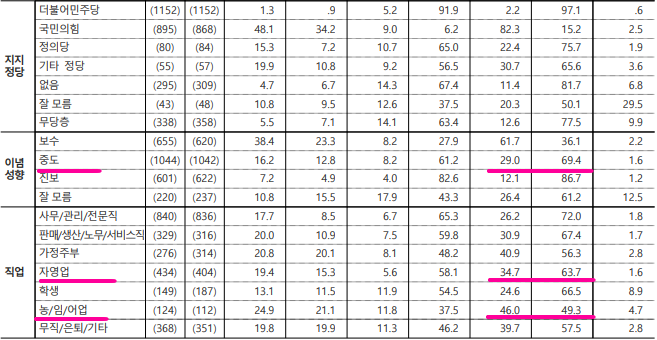 3) 이념성향별(민주당 대 국민의힘)