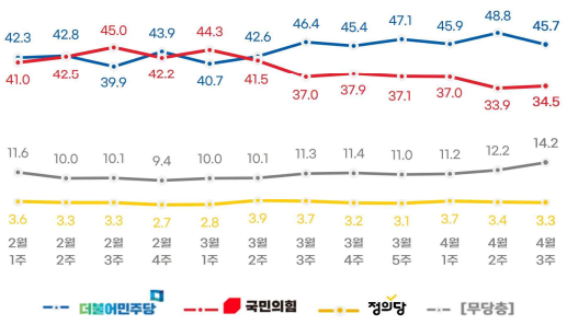 2023.04.17 - [정치] - <4월 3주 차> 윤 대통령 지지율 및 정당 지지율 등 각종 여론조사 집계