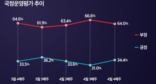 1. 윤 대통령 국정운영평가 : 부정 평가 64.0%, 긍정평가 34.4%