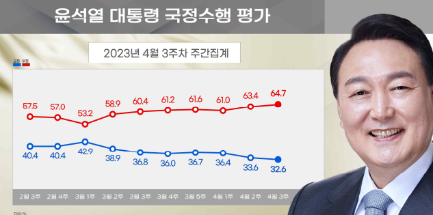1. 윤 대통령 국정운영평가 : 긍정 32.6%, 부정 64.7%