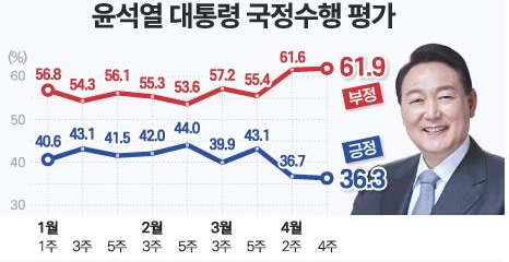 1. 윤석열 대통령 국정수행평가 : 부정 61.9%, 긍정 36.3%