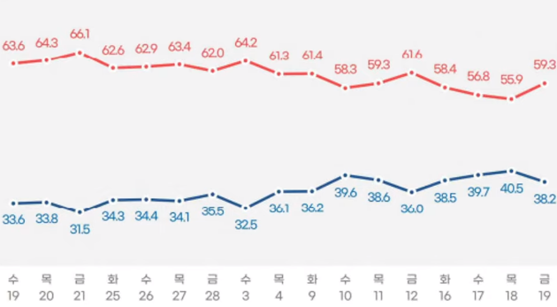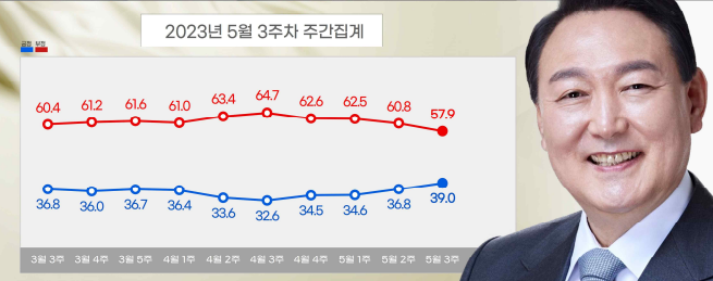 1. 윤 대통령 국정운영평가 : 긍정 39.0%, 부정 57.9%