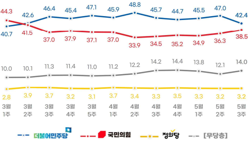 2023.05.30 - [정치] - <5월 말, 6월초 여론조사집계> 윤 대통령 지지율 및 정당 지지율 등
