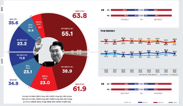 1. 윤 대통령 국정운영평가 : 긍정평가 35.6%, 부정평가 63.8%(ARS)