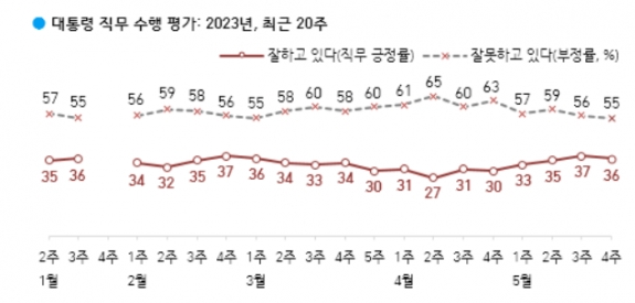 (2023년 5월 15일~5월 19일, 2504명, 무선97%, 유선3%, 신뢰수준에 ±2.0%p)