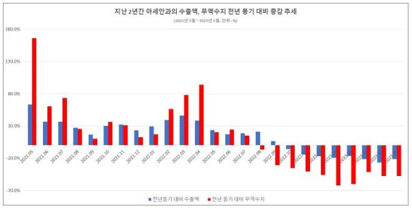 22년 10월이후 8개월째 전년 동기대비 감소(2008년 금융위기 이후 처음)
