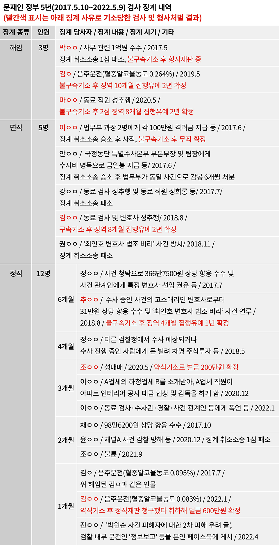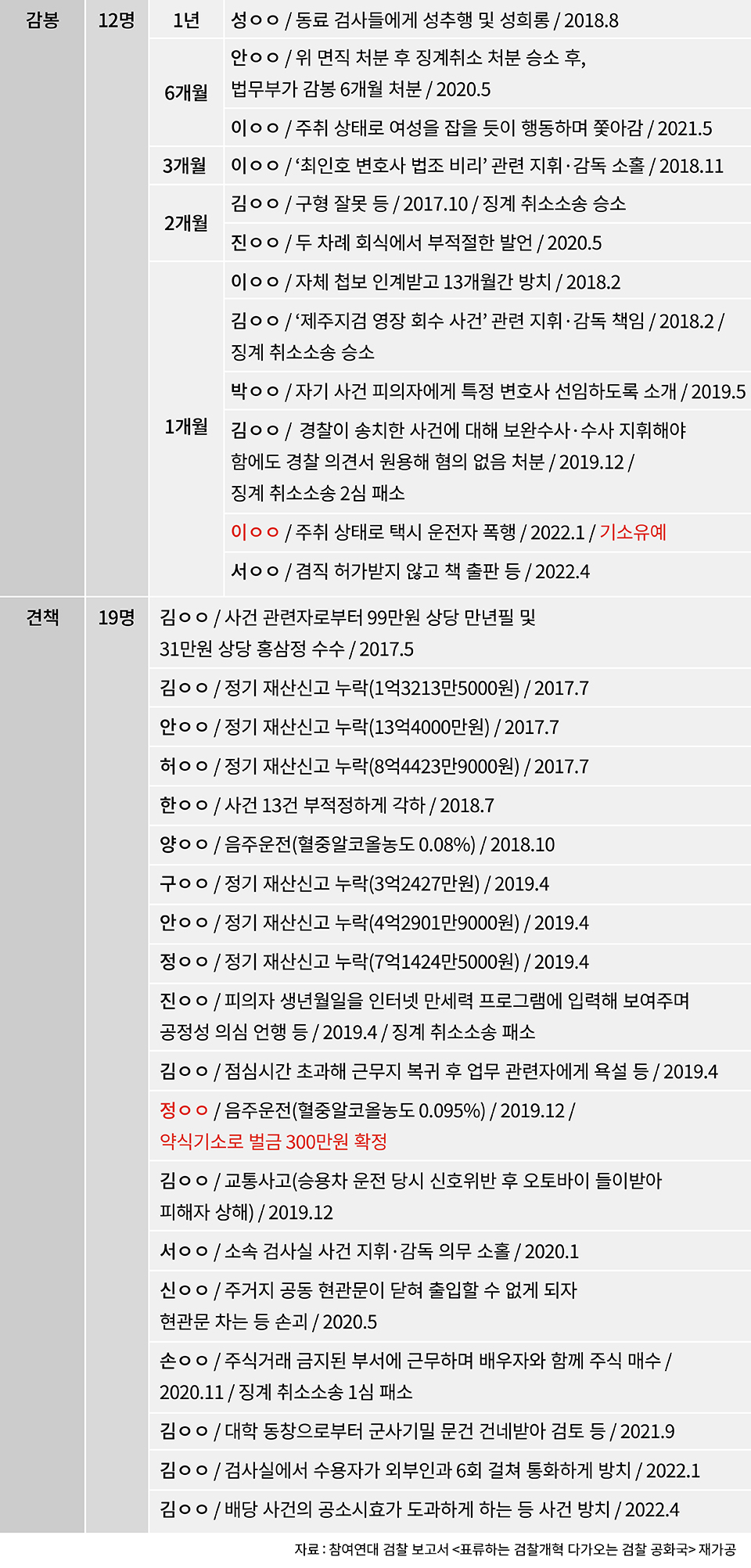 (참여연대 사법감시센터의 문재인정부 5년간의 검찰보고서의 사례, 총 51명)