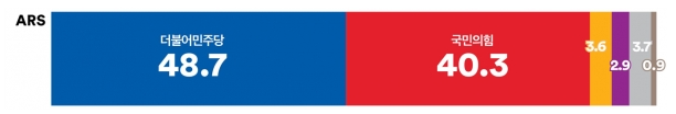 2. 정당지지도 : 국민의힘 40.3% vs 더불어민주당 48.7%(ARS)
