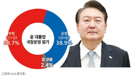 1. 윤 대통령 국정운영평가 : 부정 평가58.7%, 긍정평가 38.9%