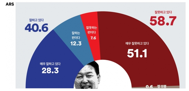 1. 윤 대통령 국정운영평가 : 긍정평가 40.6%, 부정평가 58.7%(ARS)