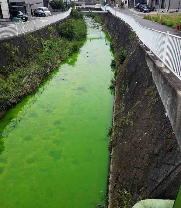 2. 녹색강 : 23년 7월 5일, 나라현의 다쓰타강이 목욕용 소금 착색제의 주성분으로 쓰이는 플루오레세인 나트륨 때문