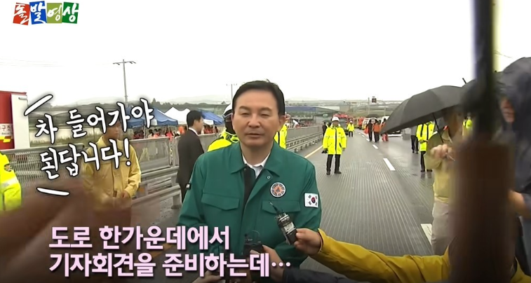누군가가 '지금 (견인) 차가 들어가야 한다. 잠깐 비켜달라'라고 외쳤으나, 이 말은 들은 원희룡은 '(기자회견)짧게 하고..'라며 그대로 그 자리에 서있었다. '비극적인 사고, 너무나 참담하다'는 말을 하고 있으나, 그 견인차는 실종자나 부상자를 수습하기 위한 차량인데 그깟 기자회견이 먼저란 말인가.