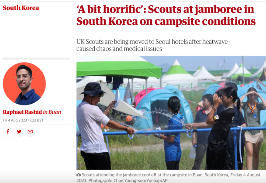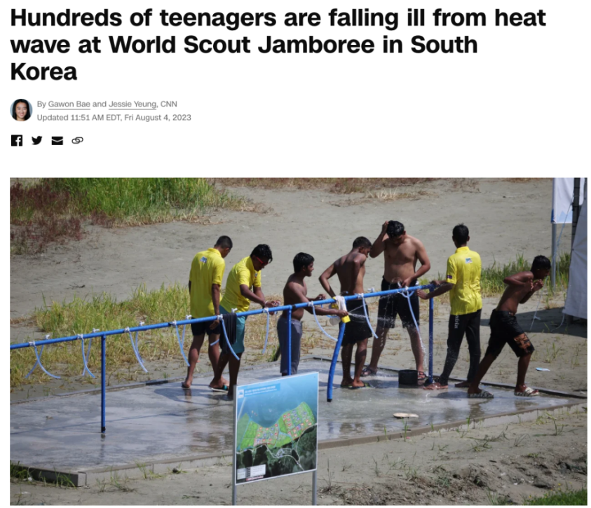 잼버리, 외신보도 모음.. 전쟁 피난민 같다!!! 잼버리 더위 사진