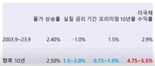 여기에 더한 것이 미국채 수익률로 보아야 하는 한국금리의 기조이다. 미국의 3대 경제학자 서머스나 빌에크만은 '향후 10년간 미국채의 평균수익률은 최소 4.75%가 될 것이다.' 고 전망한다. 이는 가계부채비율이 높은 한국경제에 치명적인 발언이다. 다시 말해 2%정도에 빌렸던 대출이자가 7%정도에 현재 머물고 있는데, 이를 버티고 있는 이유는 부동산의 상승 또는 이자의 하락을 기대하고 있음에도 불구하고, 시장은 이게 불가능하다는 소리를 하고 있는 것이다.