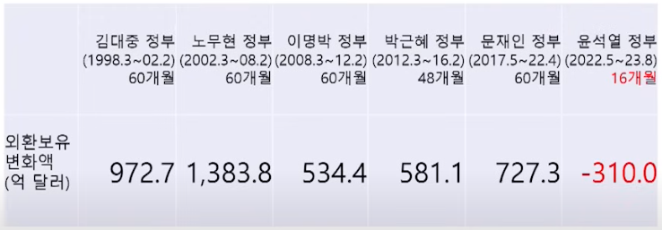 더구나 윤석열 정권이후 16개월동안, 외환보유액은 310억달러가 감소하였다, 우리는 외환위기를 겪었던 나라로서, 이는 치명적이다.