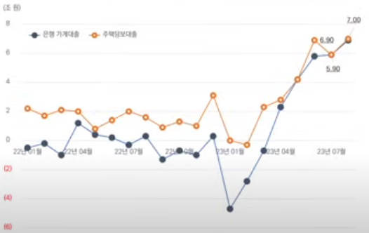 시중은행의 대출 금리 상단이 연 7%를 넘겼고, 전세 자금 대출과 신용 대출을 받은 대출자의 월 이자 상환액은 2년 새 최대 2배로 증가하였다. 이 중 금리가 오를수록 상환 능력이 급격하게 떨어지는 일반 가계 다중 채무자는 451만 명에 달한다.