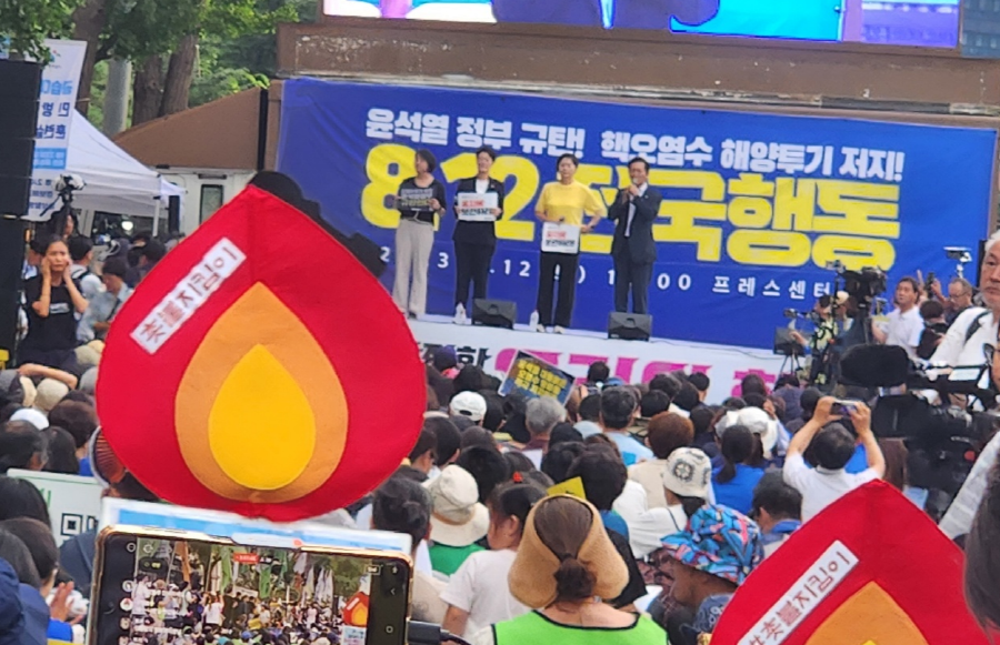 8월 12일, 4시까지 비가 내린 가운데에도 프레스센터 앞에서는 '일본 후쿠시마 오염수 투기반대'를 외치는 집회가 열렸다, 이에 대한 보도 등이 제대로 없어 이를 기록해 본다. 어린이 들도 다수 참석하여, 이런 위기의식을 전달하고 있다.