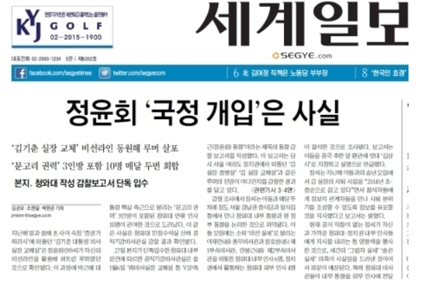 이에 청와대가 난리났고, 사실무근이라면서, 청와대에서 세계일보와 보도한 기자, 편집국장 등 6명을 고소하고, 서울중앙지방검찰청의 수사 개시됨.