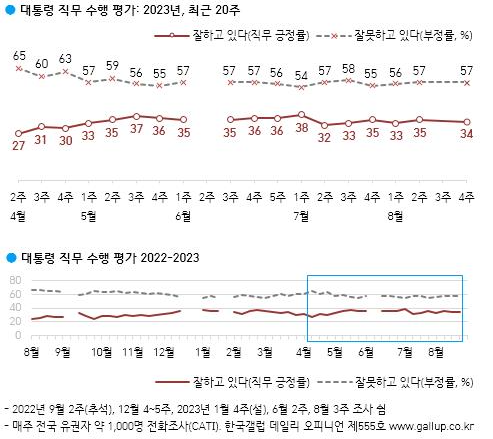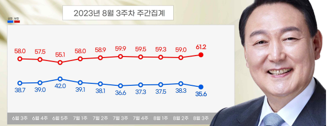 2023.08.14 - [정치] - <8월 3주 여론조사집계> 윤 대통령 지지율 및 정당 지지율 등