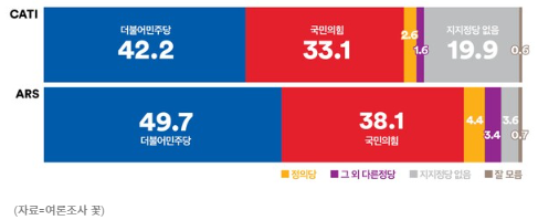 2. 정당지지율 : 민주당 49.7%, 국민의힘 38.1%(ARS)