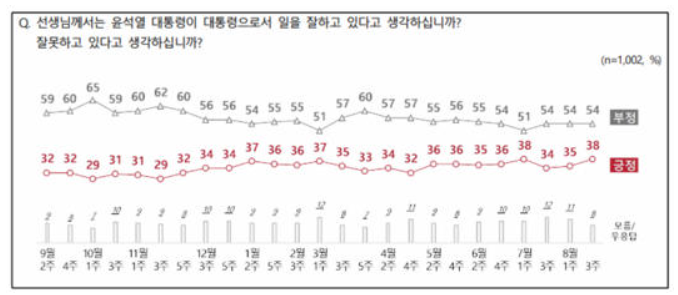 (2023년 8월 10일~8월 11일, 1002명, 무선 97%, 유선 3%, 신뢰 수준에 ±3.1% p)