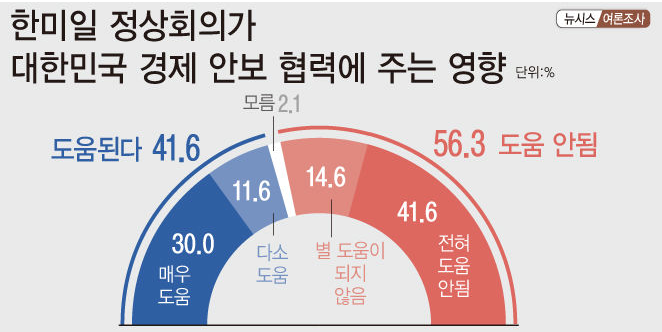 4. 한미일 정상회의, 한국경제 안보 관련? 도움 된다 41.6%, 도움 안 된다 56.3%