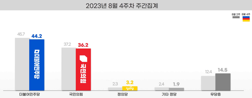 2023.08.28 - [정치] - <8월 말 9월 초 여론조사집계> 윤 대통령 지지율 및 정당 지지율 등