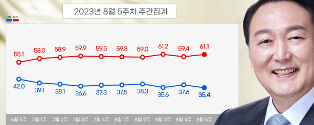 1. 윤 대통령 국정운영평가 : 긍정 35.4%, 부정 61.1%