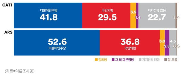 2. 정당지지율 : 민주당 52.6%, 국민의힘 36.8%(ARS)