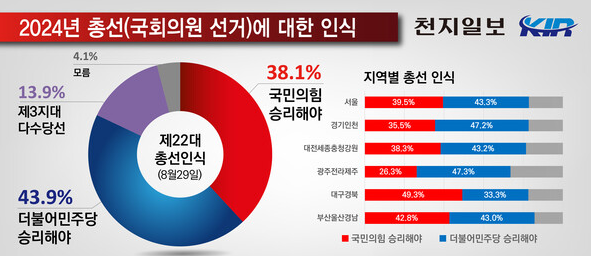 2024년 총선에 대한 여론조사, 출처 :코리아정보리서치